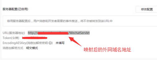 3,映射后,测试下用浏览器是否可以直接访问自己的域名地址了。再在自己的微信公共平台里面埴写自己映射后外网域名地址即可。