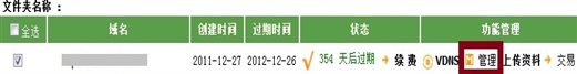 3. 选择您将要修改域名前的单选框,点击域名后的[管理];