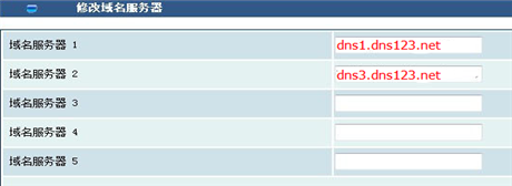 5. 将域名服务器1及域名服务器2分别修改成nat123为您提供分配的dns地址。
