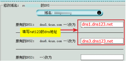 3、在打开的域名DNS设置页面,输入为您分配的域名DNS服务器地址。