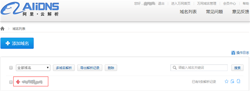 1.登入阿里云解析的域名管理页面;