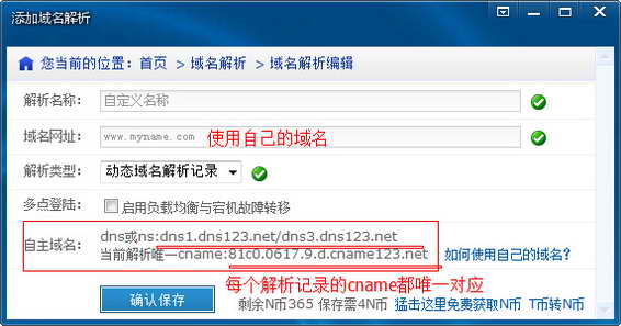 3,如自己域名注册商不支持URL转跳,使用dnspod等支持URL转跳的解析服务。