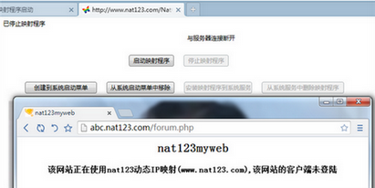 如果停止映射程序或关闭nat123启动状态WEB浏览器页面,则网站(abc.nat123.com)不能访问。