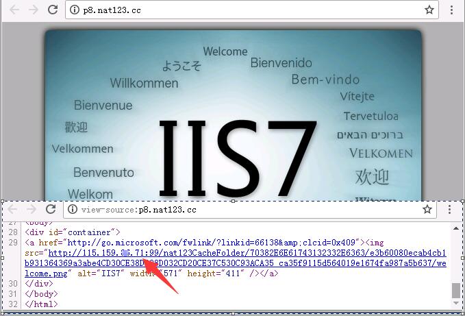 5,访问自己80域名网站,并可通过查看源代码查看到自己的80网站文件数据是直接走了自己本地公网IP自己带宽流量的。