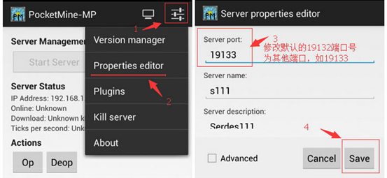 如还不行,修改默认端口19132为其他端口如19133再保存后,再启动服务。(我就是这么成功开启的)提示:安卓手机未ROOT前是使用不了低端口的。
