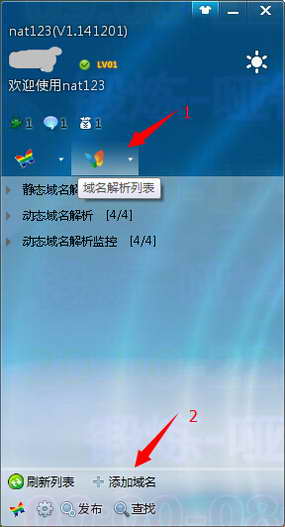 进入主面板/域名解析列表/添加域名。