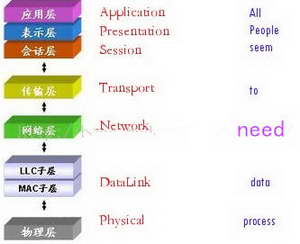 ISO/OSI的参考模型共有7层,由低层至高层分别为:物理层、数据链路层、网络层、传输层、会话层、表示层、应用层。用一句话来记忆:All People Seem To Need Data Process。