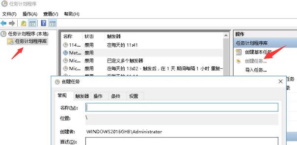 用“Win + R”键并输入gpedit.msc回车打开计划任务程序,以次点击任务计划程序库、创建任务,开始配置任务参数。