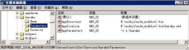 在haraka下,看看有没有Parameters这个项,没有的话就建立一个,然后在Parameters下分别建立三个键值(字符串):