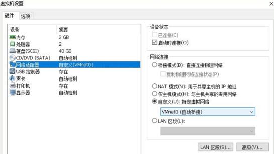 本地网络设备较多,只能让VM虚拟经过对应本机物理机连接的单独网段内网IP使用,故而将VM选择配置使用NAT网络连接模式。