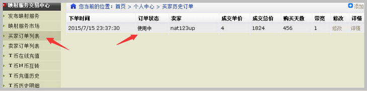 付款成功后,订单状态变成使用中。