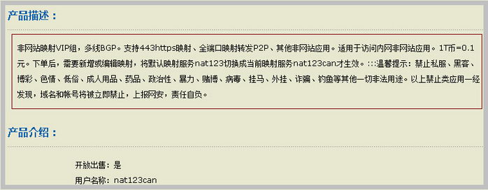 >>非网站映射VIP(nat123all);支持非网站映射、https映射、全端口映射和网站加速;稳定速度绝对保障;