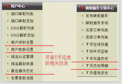 用户资料设置、用户参数设置、最近操作历史、T币充值历史、T币历史明细,都可查看T币信息。