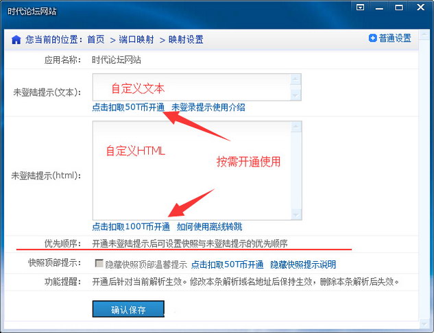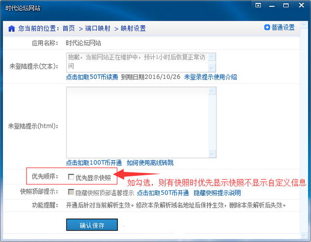 1,开通未登录提示自定义后,可按需选择网站快照和自定义提示的优先顺序。