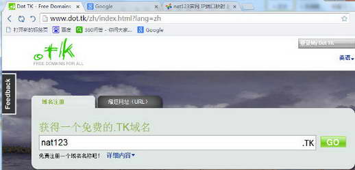 比如我想要个nat123的顶级tk域名,这里就输入nat123,如尚未被别人注册,“GO”后转跳到“正常注册”。