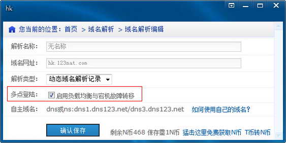 1.添加或修改动态域名解析记录,启用多点登录(启用负载均衡和故障转移)。