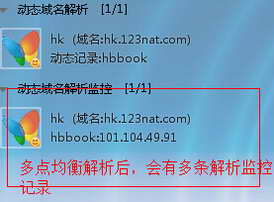 设置多点解析后,可以在动态域名解析监控列表查看到多条解析记录。登录点设置了离线的不显示。