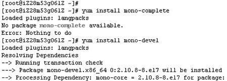 如执行安装mono命令提示无安装包则参考《在linux2.8以下环境安装指导》里面的在线下载mono安装包章节部分。