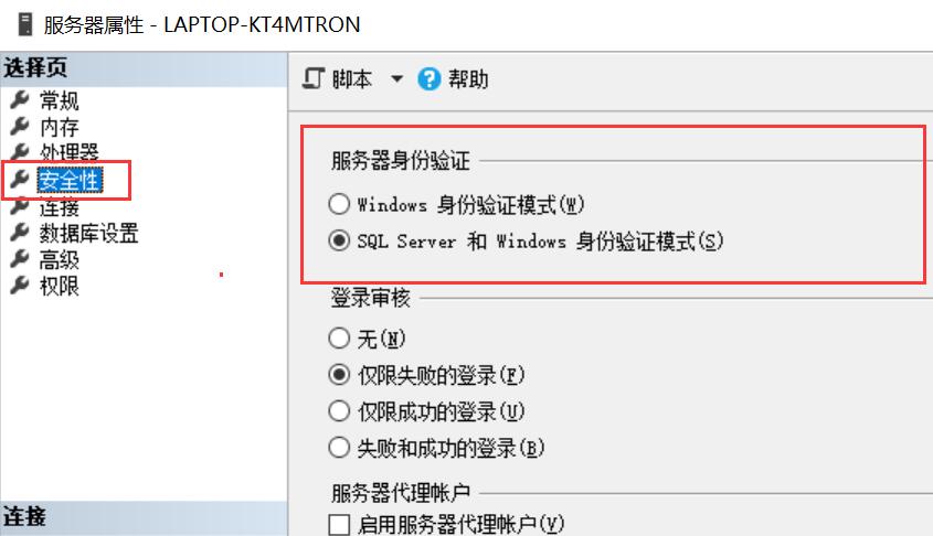 安全性/服务器身份验证/开启SQL Server身份验证模式(混合模式),