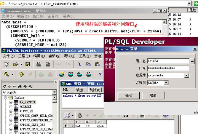 详细可参考《外网访问内网oracle数据库-nat123全端口映射实现》