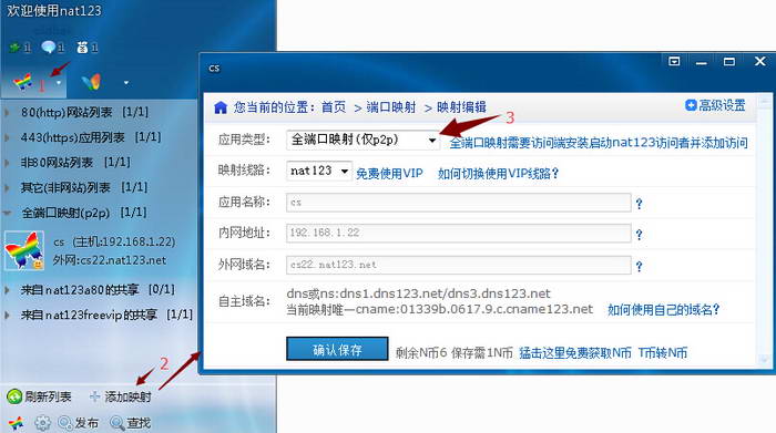 7.全端口映射转发P2P有专用服务器支持,更高穿透率,更稳定,更快的转发速度,需购VIP使用。