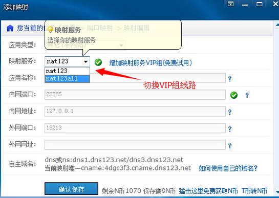 (2)购买映射VIP后,新增/编辑映射,切换VIP线路使用。