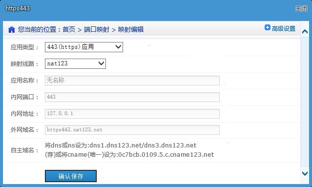 (1)在网站服务器或内网,安装并使用nat123,添加端口映射。