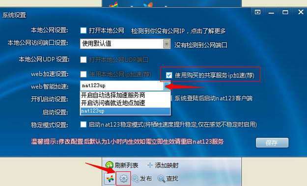 如本地公网IP加速和网站加速VIP同时有效,系统会优先使用本地加速。建议本地公网IP上行小,使用网站加速VIP时,取消本地加速勾选项。