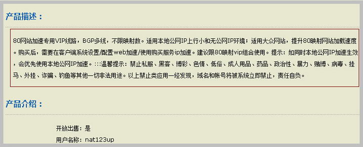 进入购买详情页面,查看产品描述和产品详细介绍。产品描述是发布者自定义概要说明,可以快速了解此VIP的简要。