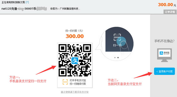 自动转跳到支付宝充值页面,通过手机登录支付宝扫一扫支付,或电脑登录支付宝进行支付。