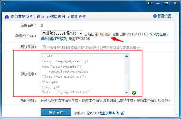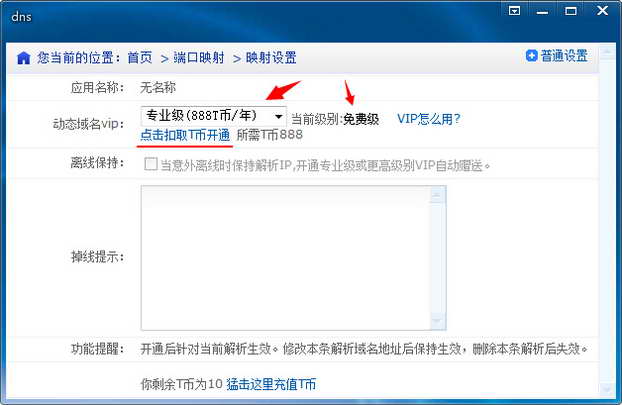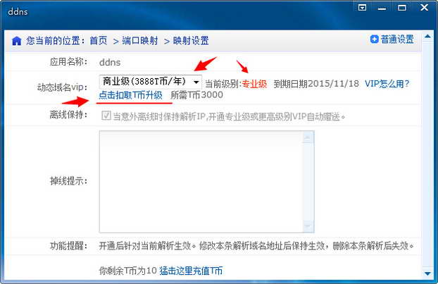 编辑动态解析记录右上角高级设置或客户端右键高级设置,进入对应动态域名解析记录的高级设置界面,对原VIP进行升级操作。选择更高级VIP,并进行升级操作。升级更高级VIP,会在原价基础上扣除差额。