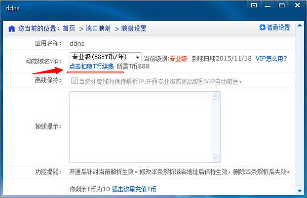 编辑动态解析记录右上角高级设置或客户端右键解析记录高级设置,进入对应动态域名解析记录的高级设置界面,对原VIP进行续费操作。