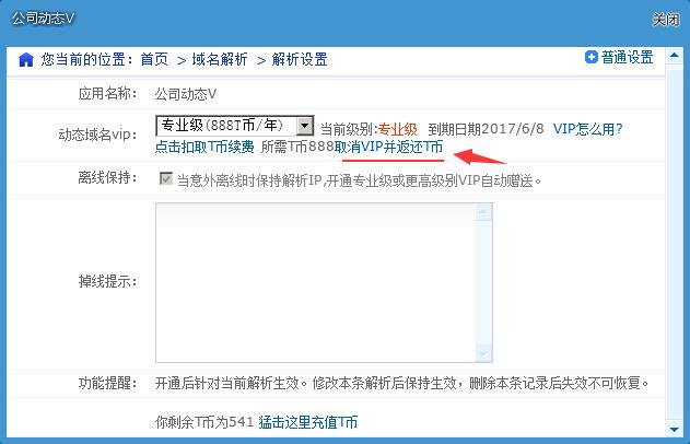 由于需求变更,使用动态域名解析VIP服务中途可按需取消VIP服务。