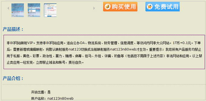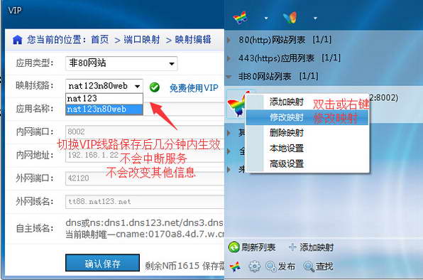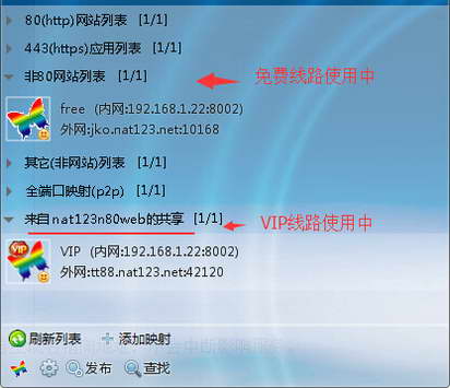 1,免费线路和其他VIP线路,切至新非80网站映射VIP后,外网端口有可能会发生变化(当前VIP线路当前外网端口已经分配给先人在用时,会重新分配一个新的固定的未使用的外网端口)。